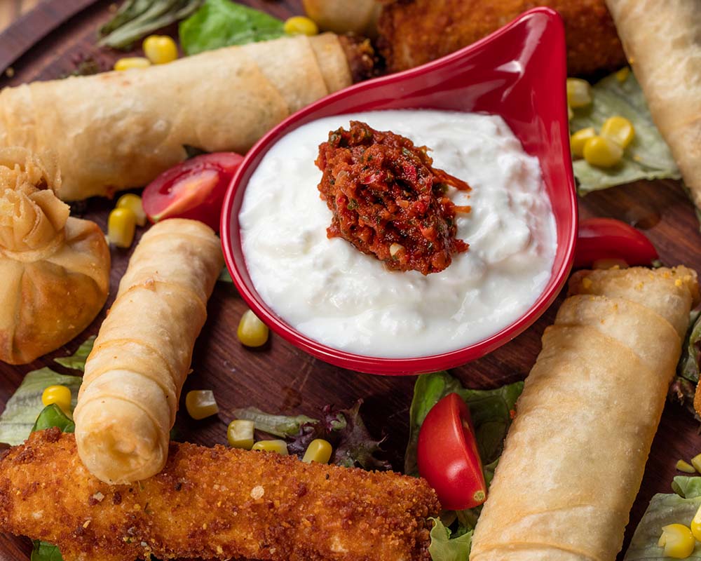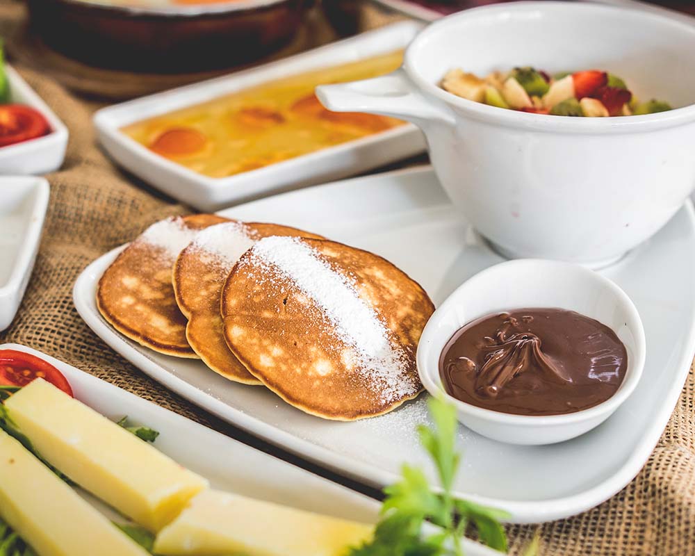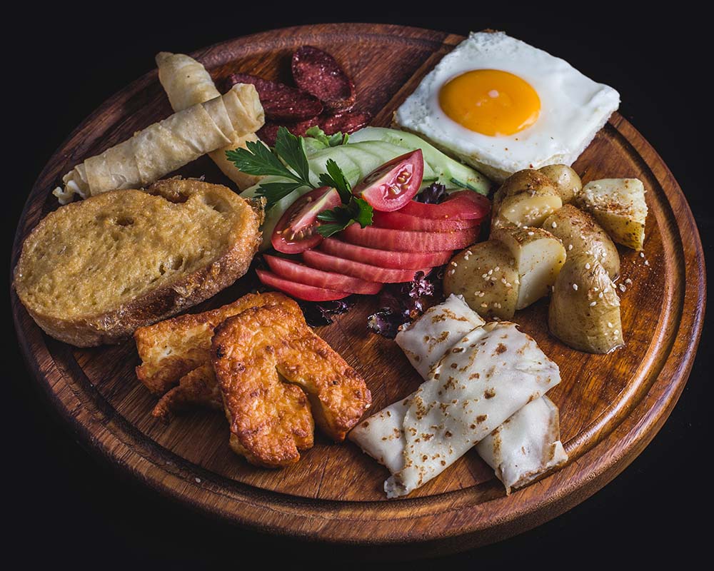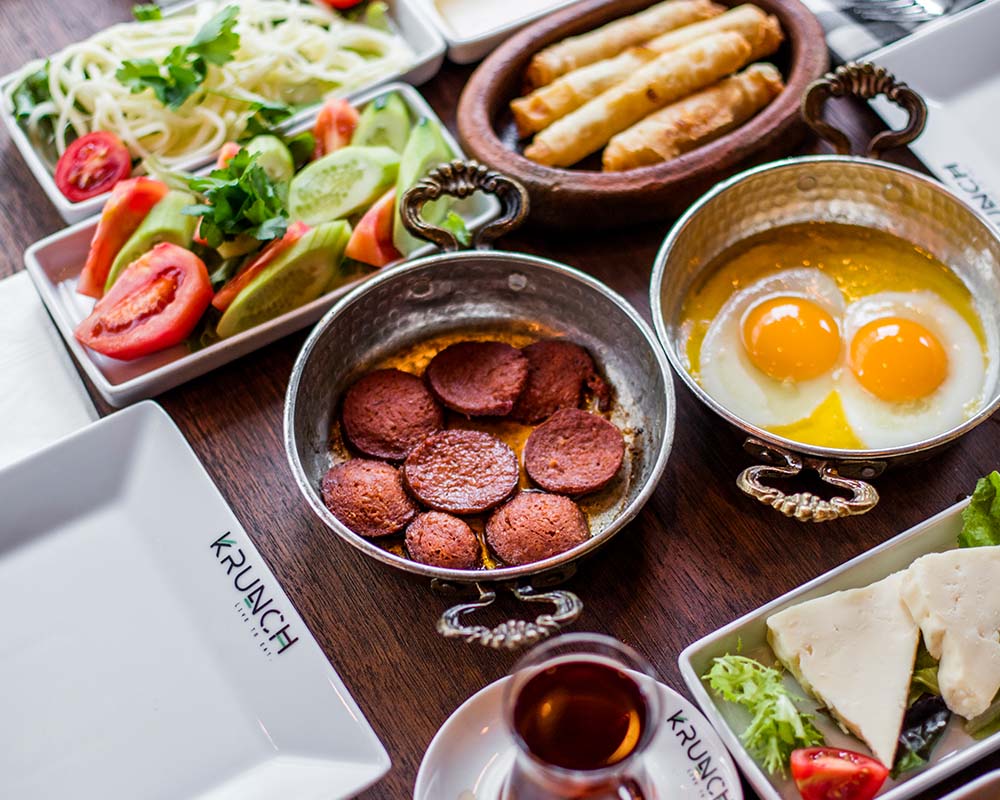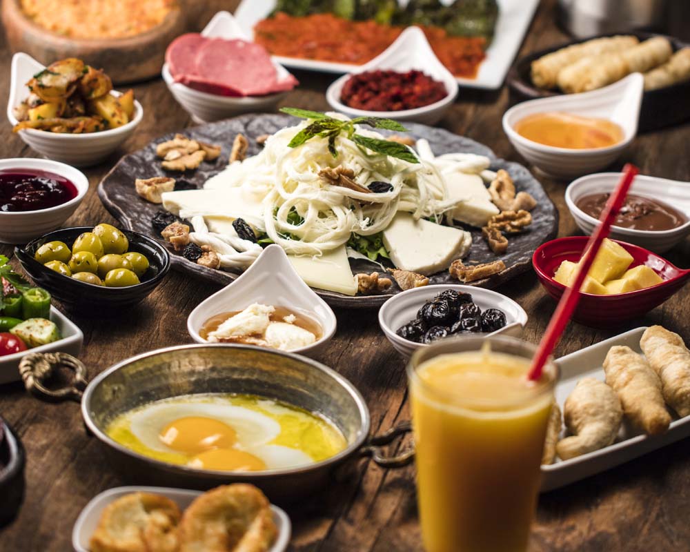 Beyaz peynir, Dil peyniri, Taze kaşar, Burgu peyniri, Erzincan Tulum Peyniri, Bal-Kaymak, Yeşil Zeytin, Siyah Zeytin, Reçel, Nutella, Tereyağı, Izgara Sucuk, Domates, Salatalık, Biber, Siğara Böreği, Salam, Sahanda Yumurt